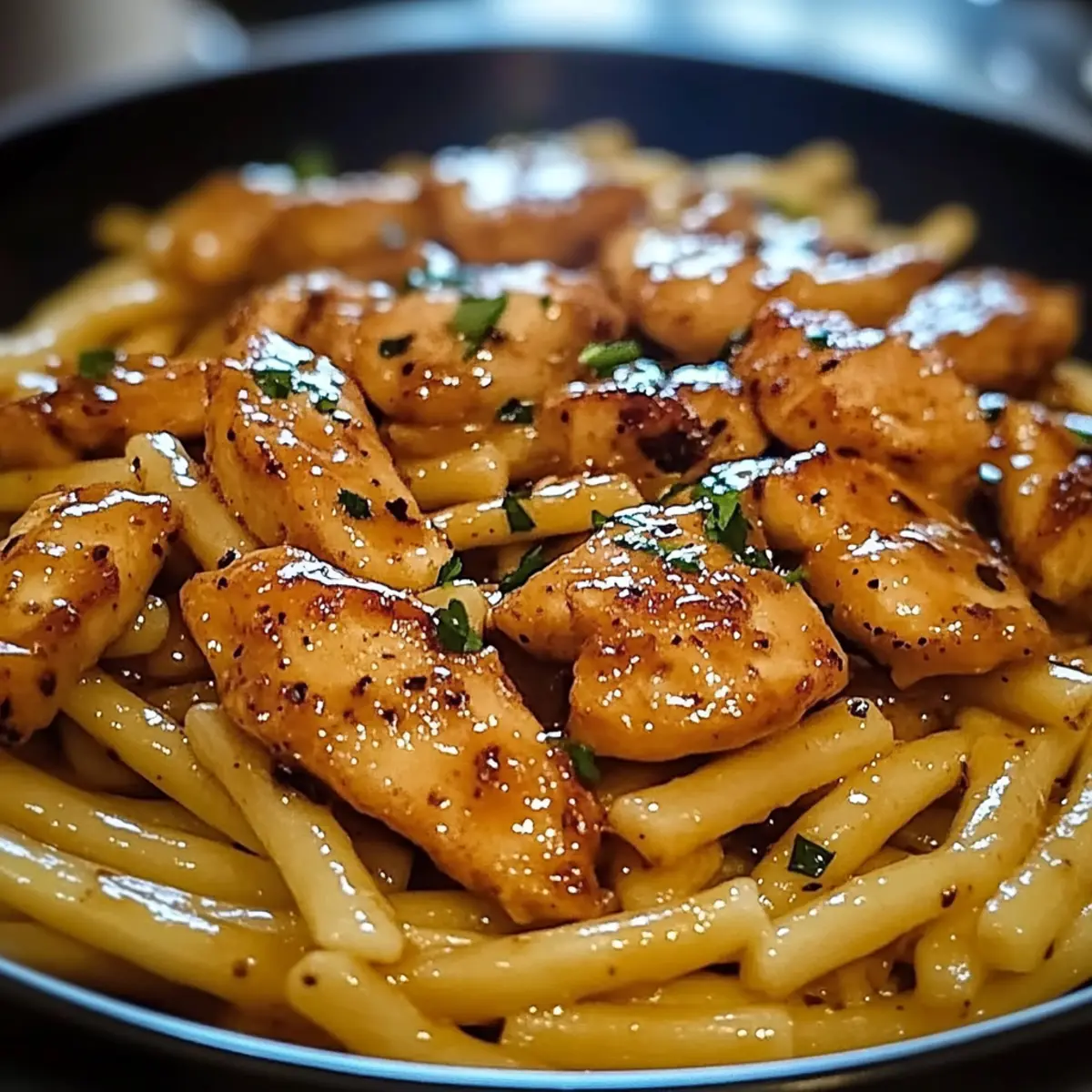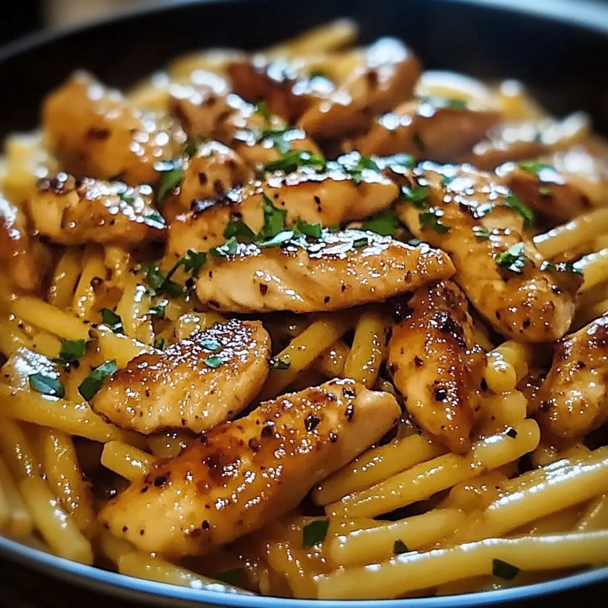 Comforting, Sticky Smoky Garlic Butter Chicken Pasta captures the essence of home-cooked goodness, bringing warmth and satisfaction to any table. Effortless preparation means you can whip it up in no time, perfect for busy weeknights or unexpected guests. Versatile flavor profiles allow for delightful tweaks; try adding sautéed veggies for extra nutrition or substitute quarterly ingredients. Aromatic allure from garlic and smoked paprika enchants everyone in the room—your family will be asking for this dish again and again! Pair it with a vibrant salad or crusty garlic bread for a complete meal that never disappoints.