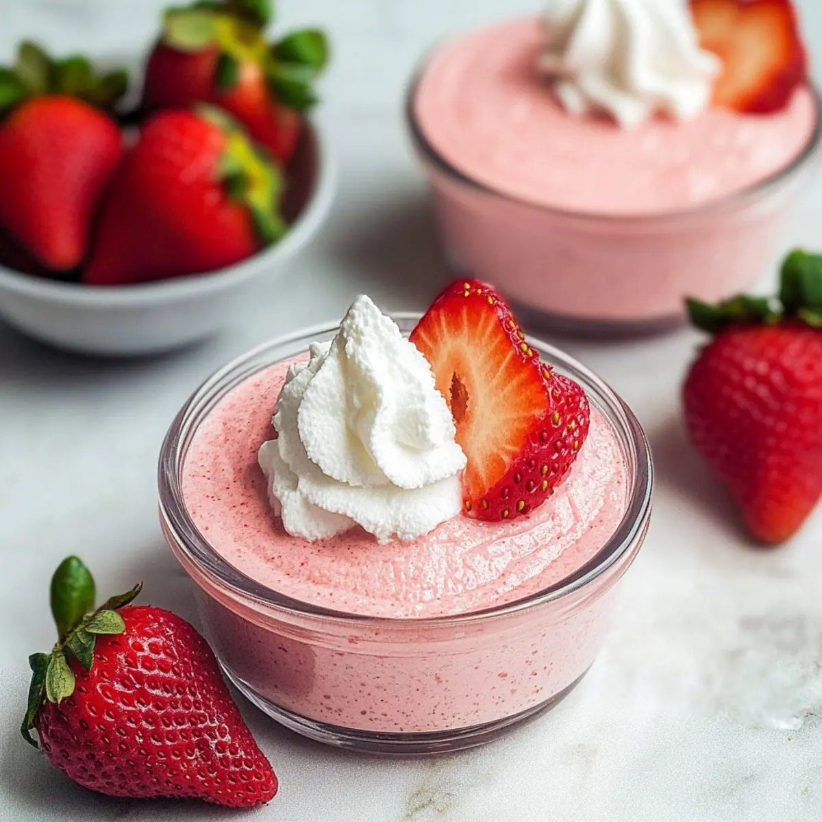 Lightness, the aquafaba creates a wonderfully airy texture that feels like a delicate cloud melting in your mouth. Quick and Easy, with no baking required, you can whip this up in minutes, making it the perfect last-minute dessert. Fresh Ingredients, using ripe strawberries ensures maximum flavor, making every bite a burst of summer goodness. Versatile Delight, feel free to swap strawberries for blueberries or raspberries for a delightful twist. Crowd-Pleaser, whether at a picnic or dinner party, this mousse will impress, leaving everyone asking for seconds. For more light and refreshing ideas, check out my Strawberry Banana Pudding that’s just as delightful!