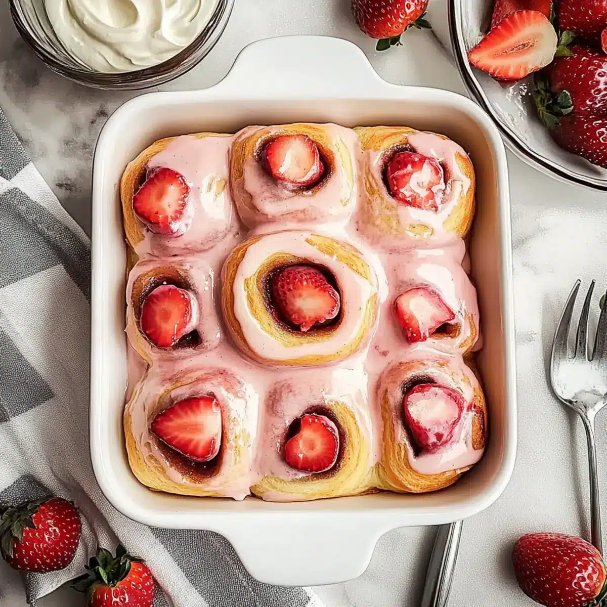 The moment I pulled those warm Strawberry Cinnamon Rolls from the oven, my kitchen transformed into a cozy bakery, filled with that sweet, buttery aroma. These delightful rolls not only promise an indulgent breakfast but also serve as the perfect ending to any meal, thanks to their soft brioche texture and luscious strawberry filling. Whether you’re using fresh strawberries that burst with flavor or frozen ones for ease, this recipe offers the ultimate comfort food experience. Plus, the tangy cream cheese glaze adds an irresistible finish that will have everyone asking for seconds! Are you ready to indulge in some serious homemade goodness? Let’s dive into the recipe!