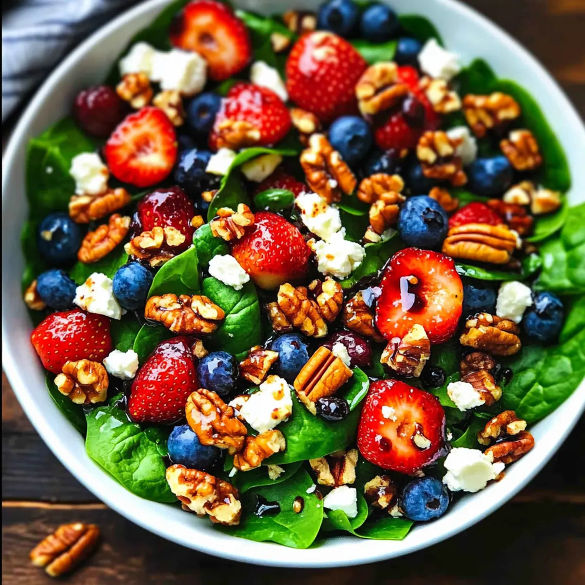 Avoid Soggy Greens: Dress the salad just before serving to keep the spinach crisp and the berries vibrant—no one likes a soggy salad!