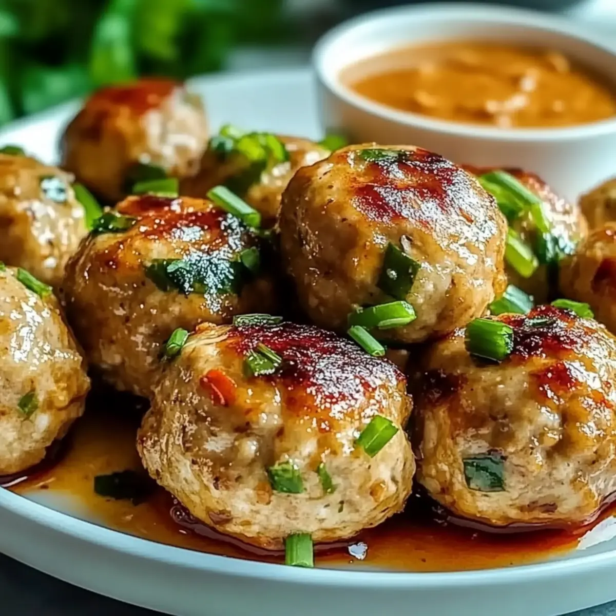 Once cooked, remove the meatballs from the oven and serve them warm. Garnish with sliced green onions for added freshness and visual appeal. Enjoy your Thai Baked Chicken Meatballs alongside the zesty dipping sauce for a delightful meal that’s sure to impress family and friends!