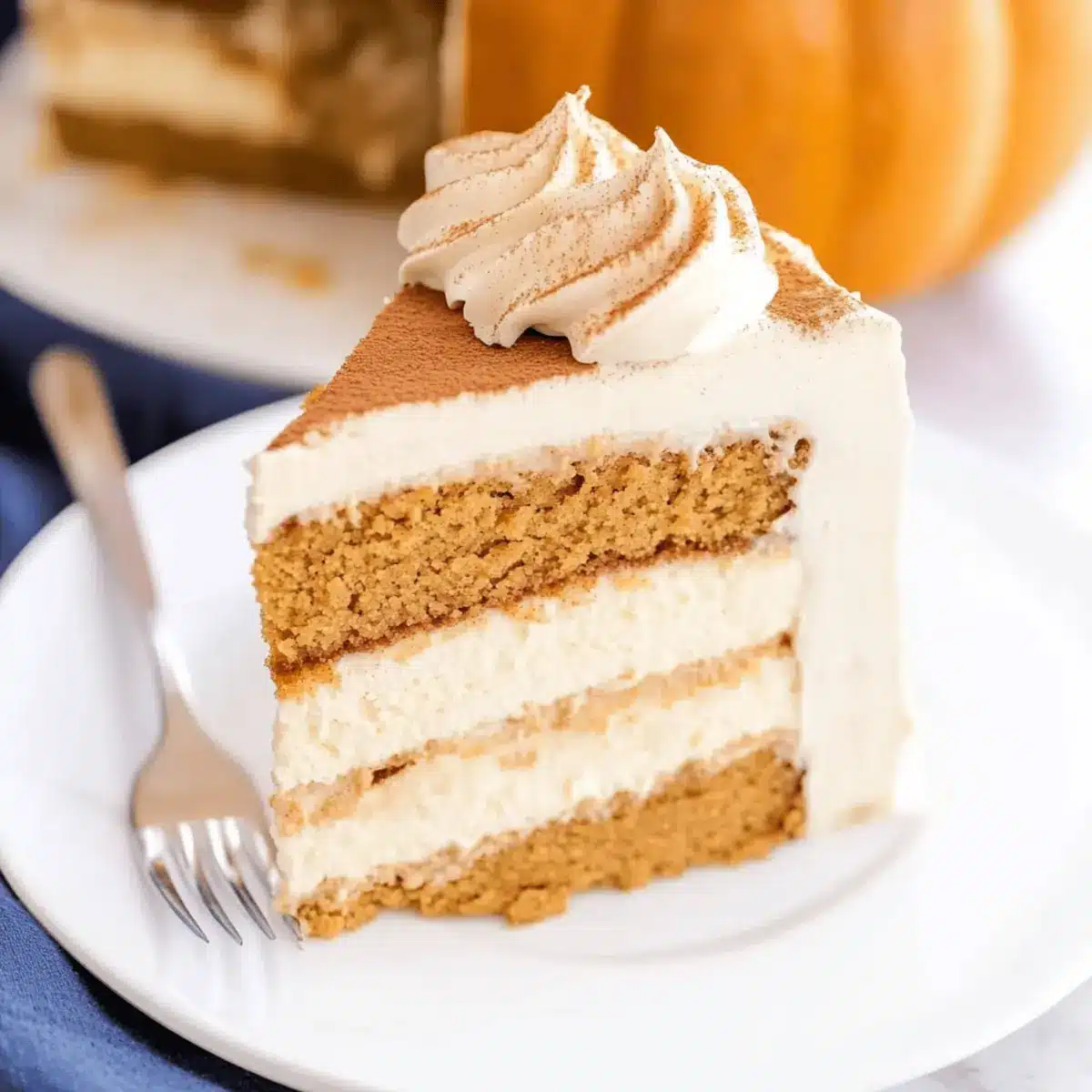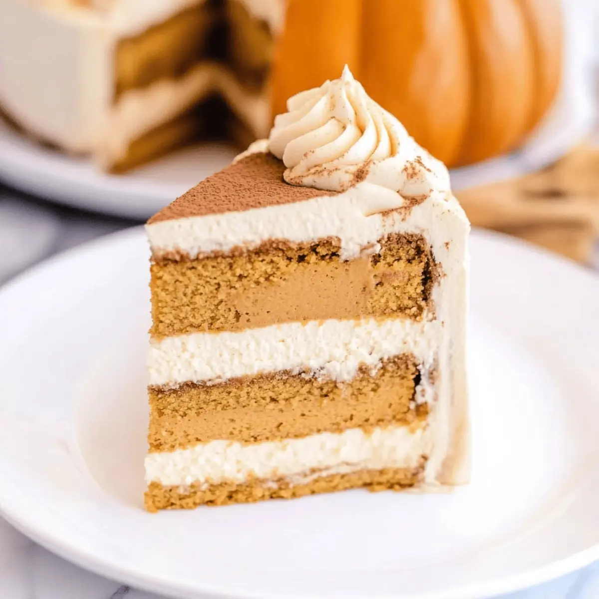 Whipped Cream: Light, airy whipped cream adds a luscious texture, making each slice even more decadent while enhancing the pumpkin and cheesecake flavors.