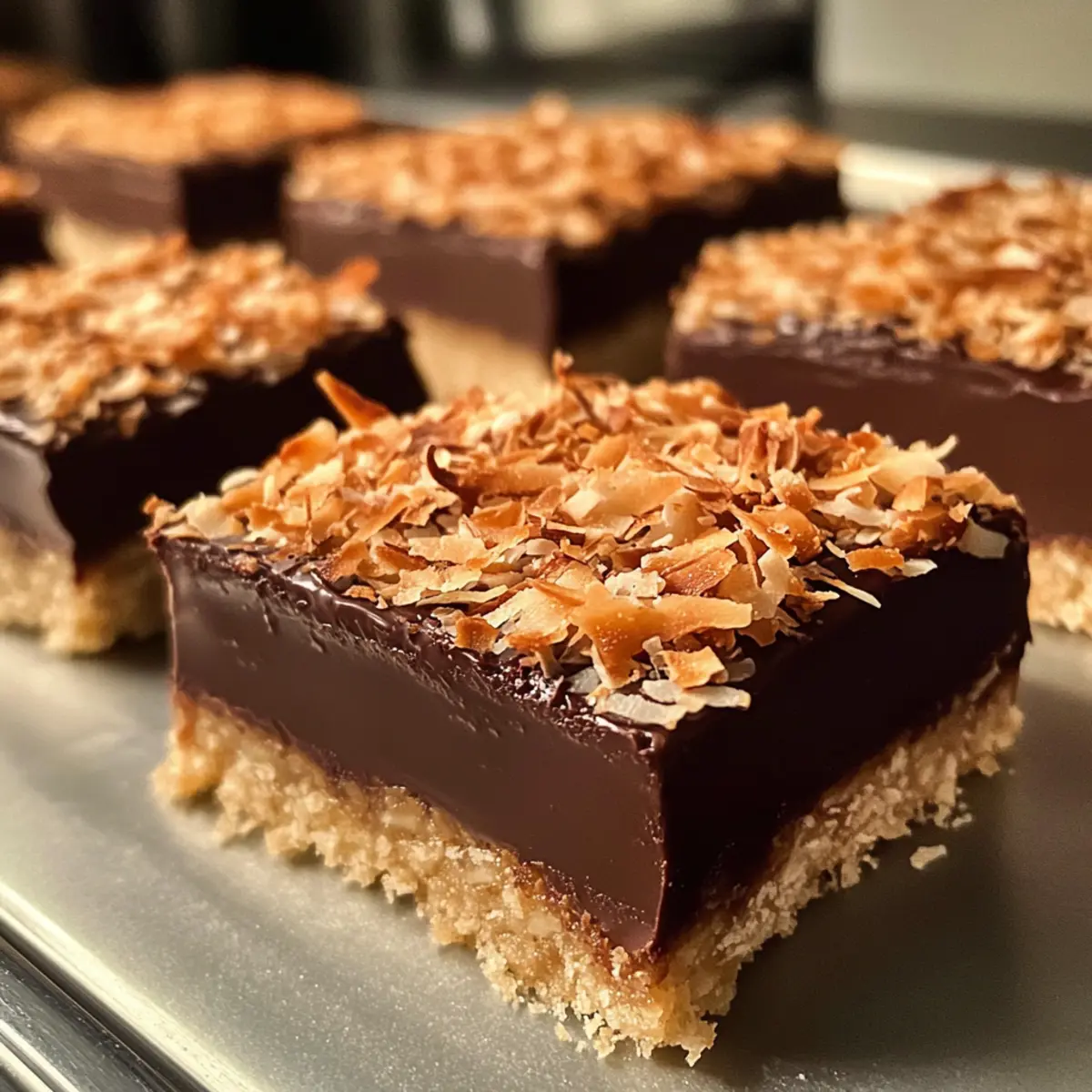 Drizzle any remaining melted chocolate over the bars for an added touch of indulgence. Before the chocolate sets, sprinkle additional toasted coconut flakes on top for a decorative and flavorful finish. This step not only enhances the presentation but also gives each bar extra crunch.