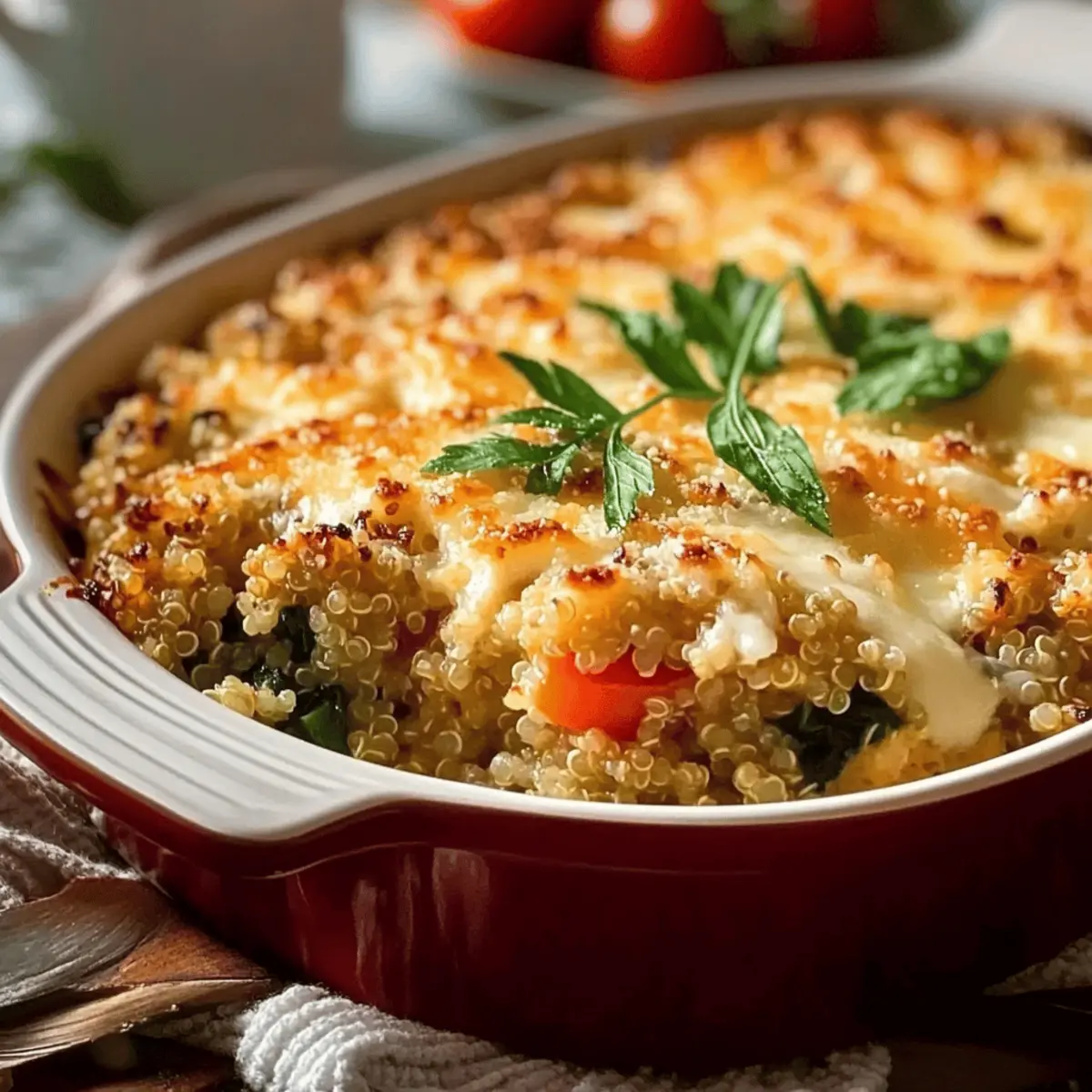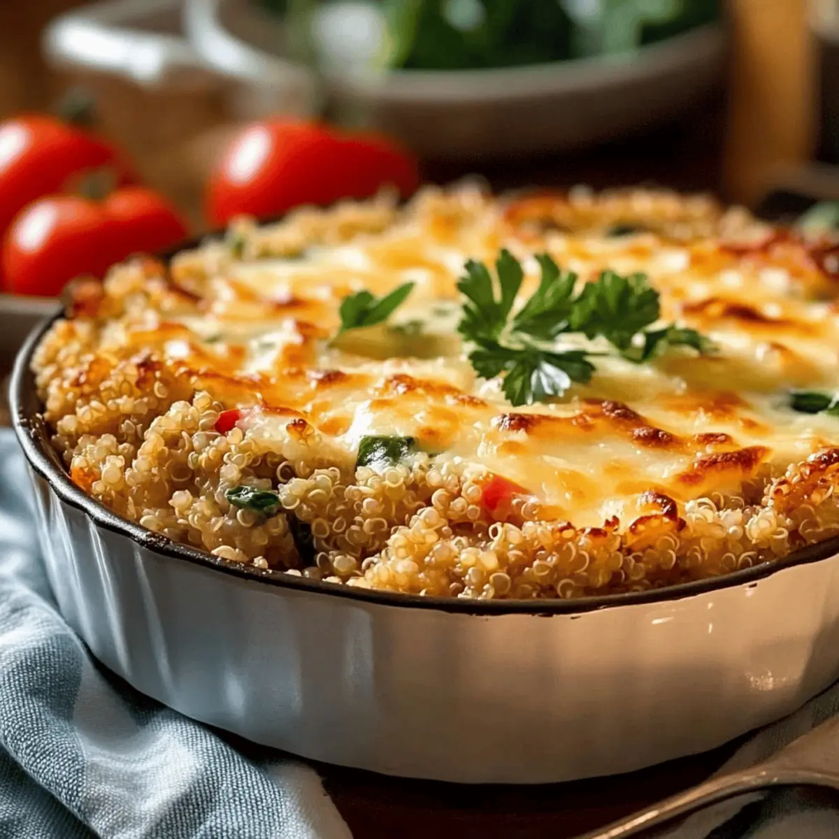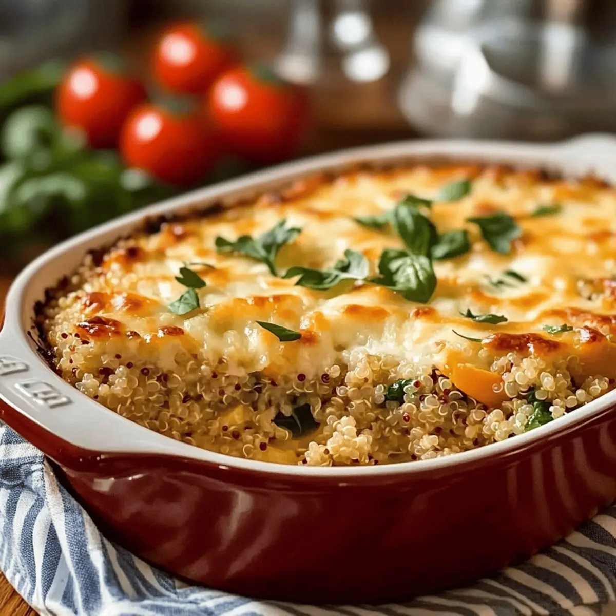 Preparing the Veggie-Packed Quinoa Casserole in advance is a fantastic way to save time on busy weeknights! You can easily cook the quinoa and sauté the vegetables up to 24 hours in advance. Simply refrigerate these components in separate airtight containers until you’re ready to assemble. For the best quality, combine the quinoa, sautéed veggies, and sauce right before baking, then transfer to a greased baking dish. When you’re ready to serve, just sprinkle the cheese on top and bake for 30 minutes at 190°C (375°F)—20 minutes covered, followed by 10 minutes uncovered for that lovely golden finish. This way, you’ll enjoy the same delicious, comforting flavors while having more time to unwind!